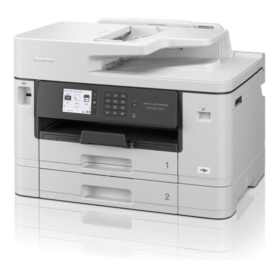 The Brother MFC-J5740DW is the all-in-one solution for small businesses requiring versatility and reliability. It offers fast print speeds of up to 28 pages per minute and automatic two-sided printing. With A3 and A4 capability, you can print high-quality documents in a range of sizes. The large 8.8 cm colour touchscreen and wireless connectivity make it easy to manage, while mobile app compatibility offers added flexibility for on-the-go printing. Whether you need to print from a workstation or a mobile device, this printer meets your business demands.