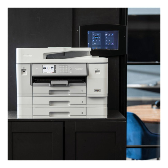 The Brother MFC-J6957DW combines fast, high-quality A3 printing, scanning, copying, and faxing with a durable and eco-friendly design. Its advanced print head technology ensures reliable performance, and with features like automatic two-sided printing and secure NFC authentication, its an excellent fit for modern businesses.