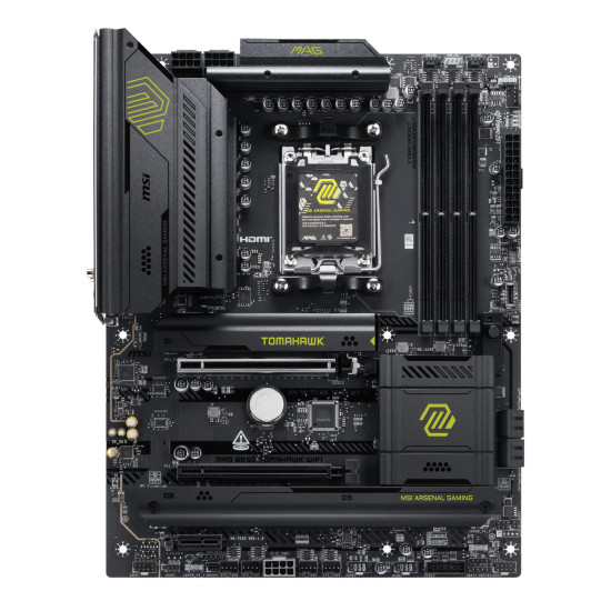 MAG B850 TOMAHAWK WIFI is designed for gamers with a stable, durable and DIY friendly foundation for their PC builds. Coming up with true Wi-Fi 7 solution, 5G LAN, USB 20Gbps, PCIe 5.0 solutions, Supplemental PCIe Power, and exclusive EZ DIY features, it's ready for the battlefield of AMD Ryzen 9000 series processors.