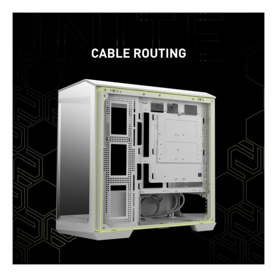 The MPG GUNGNIR 110R WHITE is designed with a memorable high-performance look to impress on first sight. A sleek front glass panel offers a dazzling view of the interior lighting that highlights the quality of the parts in the rest of the system.