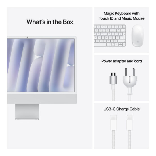 Designed to complement any workspace, the ultra-slim 24-inch iMac features an all-in-one build with a minimalist aesthetic. The Silver finish adds a premium touch, making it a stylish addition to any desk setup.