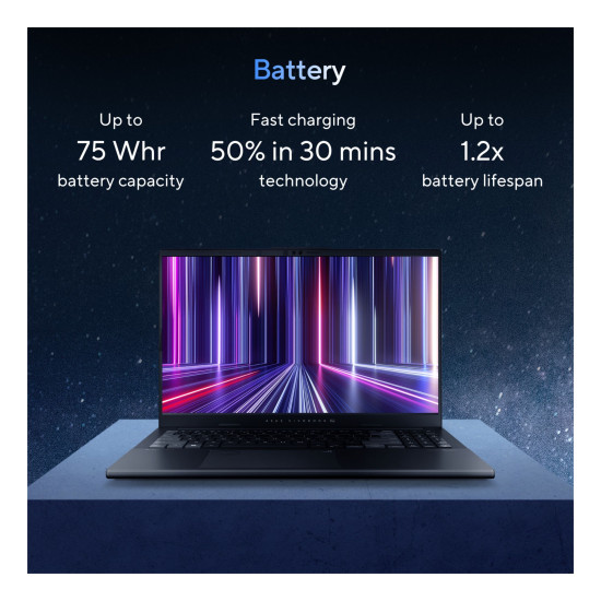 Go further without worrying about your battery. Designed for all-day use, the VivoBook Pro 15 OLED keeps you powered through meetings, classes, and creative sessions. Whether you're working on the go or relaxing at home, you can count on reliable battery performance that supports your lifestyle.