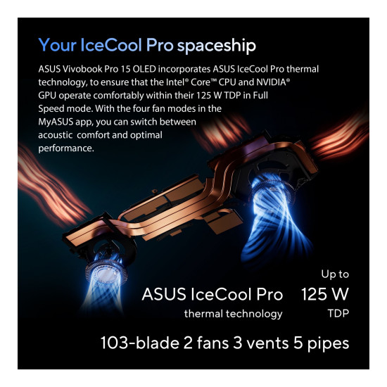 When the work heats up, your laptop stays cool. Engineered with advanced thermal technology, the VivoBook Pro 15 OLED maintains optimal performance even during intensive tasks. The efficient cooling system ensures quiet operation and long-lasting reliability, so you can focus on what matters most without distractions.