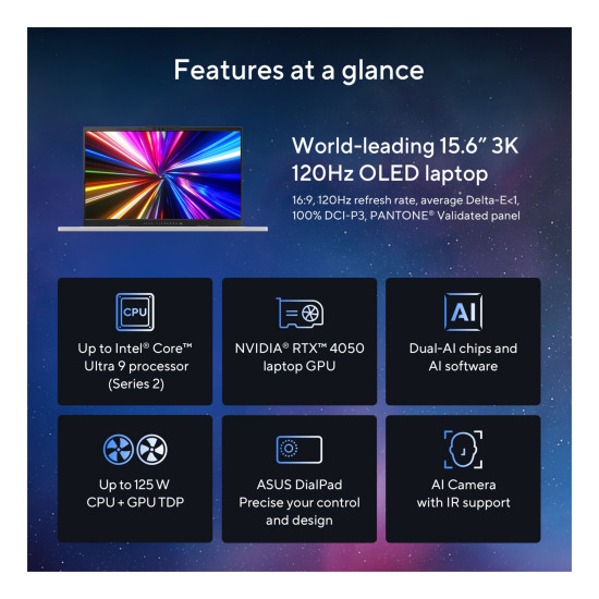 Packed with intelligent features, this laptop adapts to your needs. From fast startup and intuitive controls to enhanced security and seamless connectivity, the VivoBook Pro 15 OLED is designed to simplify your digital life. Stay connected, stay productive, and stay secure all with a device that understands your workflow.