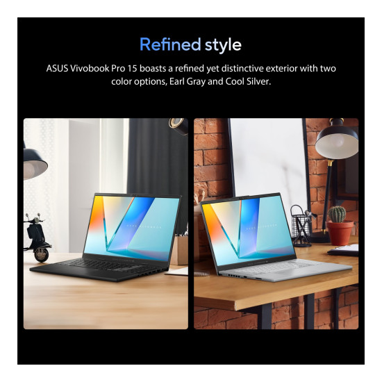 With its modern aesthetic and premium grey finish, the VivoBook Pro 15 OLED stands out in any setting. Whether you're working from a café, presenting in a boardroom, or editing from your studio, its sophisticated design complements your lifestyle. The slim profile and lightweight build make it effortlessly portable, while the durable chassis ensures its ready for the rigors of daily use.