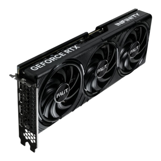 Palit's advanced dual-slot Infinity 3 cooler integrates composite heat pipes, a full copper base, and 0-dB fan tech to stay cool and silent. This SFF-ready card fits mid-sized builds without throttling under pressure.