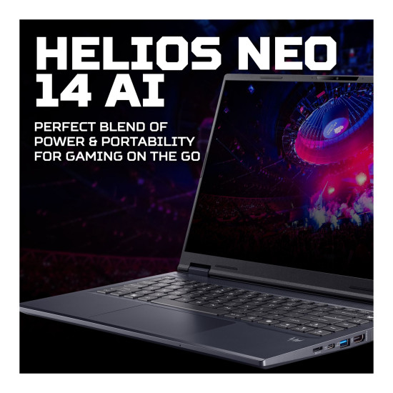 Inside, youve got the firepower of an Intel Core Ultra 7 255H AI processor, capable of speeds up to 5.1GHz. Pair that with the Helios Neo 14 32GB RAM and 1TB PCIe SSD, and youre set for fast app launches, quick boots, and fluid multitasking. The RTX 5070 8GB GPU handles demanding games and creative workloads with ease and AI acceleration only takes it further.