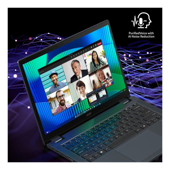 Experience the future of productivity on an AI business laptop with TravelMate Sense, PurifiedVoice with AI Noise Reduction, Microsoft Copilot with hotkey, and more.