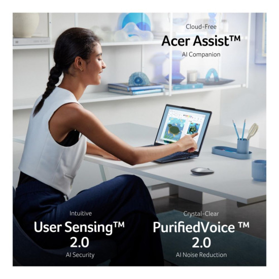 With Intel Core Ultra 5, 16GB RAM, and a 1TB SSD, the Swift 14 AI delivers lightning-fast multitasking and storage. The dedicated NPU powers advanced AI tasks while maintaining up to 29 hours of battery life.