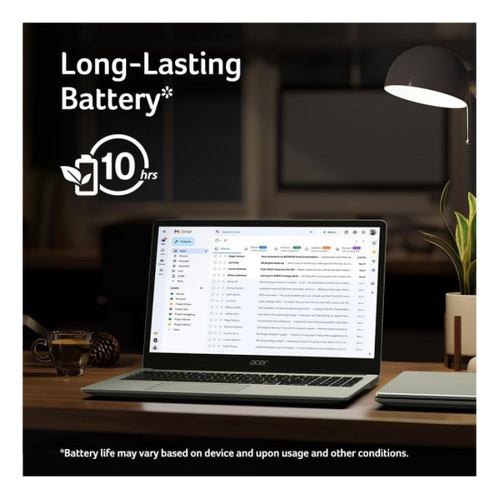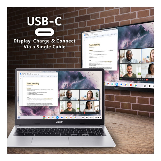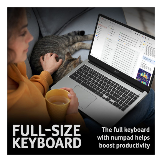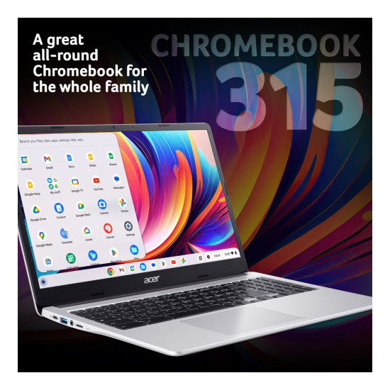 With its slim silver frame and weighing only 1.6kg, the Chromebook 315 balances portability with comfort. The 15.6" display gives you more space to work and enjoy entertainment, ideal for multitasking.