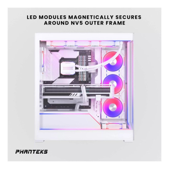 The NV5 Premium D-RGB Kit designed specifically for NV5 chassis. Elevate your NV5 chassis with mesmerizing lighting effects with the included 3x D-RGB LED modules that securely mount on the outer frame of the NV5. Ensure a clean and visually pleasing D-RGB cable concealment with the D-RGB Mainboard Cable Cover. Effortlessly connect to the NV5 D-RGB case controller or expand more lighting with the extra D-RGB Power hub.