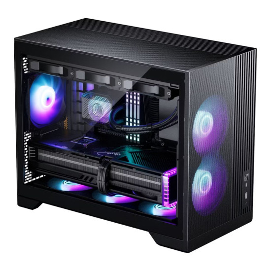 Maintaining your prized hardware at optimum temperatures is simple with the Phanteks XT M3 Micro-ATX PC case, thanks to its outstanding cooling performance. The case features support for a total of nine fans, with three mounts for 120mm fans on the top and bottom of the case, two at the front, and one at the rear. Whats more, this edition of the Phanteks XT M3 comes equipped with three powerful M25 Gen 1 DRGB fans. Mounted at the front and rear of the case, these fans facilitate amazing airflow through the XT M3 straight out of the box. When fully populated, there is almost zero space between the fans, with the only significant gap being around the PCIe slots.