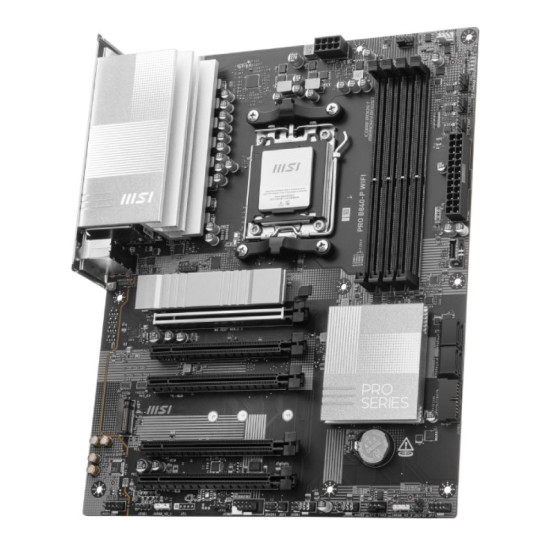 The MSI PRO B840-P WIFI is tailored for business and professional users. Featuring Wi-Fi 7 for rapid data transmission, DDR5 memory for increased performance, and efficient cooling, this motherboard delivers optimal stability. Installation is a breeze with EZ M.2 Shield Frozr and pre-installed I/O shielding. Perfect for workstations and professional setups.