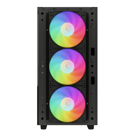 chassis. Three bright PWM enabled 140mm ARGB fans are mounted in front