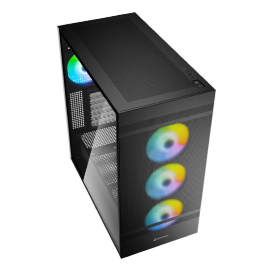 the four pre-installed 120 mm PWM fans with addressable RGB lighting. A