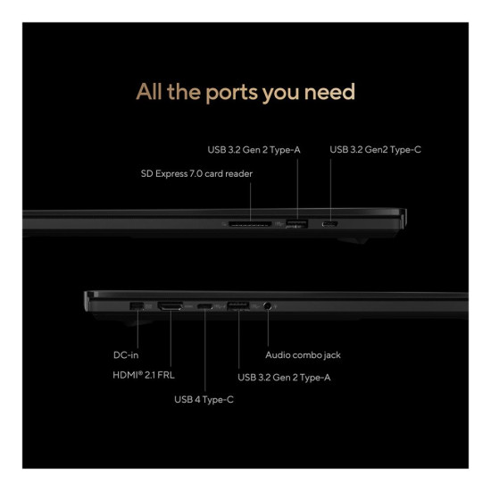Stay powered up all day with the ProArt P16s long-lasting battery. Its got all the ports you need, including a speedy 40 Gbps USB 4 Type-C and HDMI 2.1 for hooking up external displays. Plus, with Wi-Fi 7, youll enjoy fast and reliable internet wherever you are.