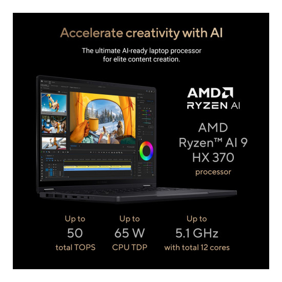 The 12-core AMD Ryzen AI 9 handles 4K rendering, livestreaming, and multitasking with ease. Say goodbye to lag and hello to smooth, real-time processing.