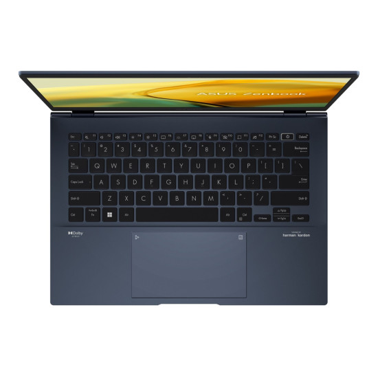For unrivaled audio quality, Zenbook 14 has a Dolby Atmos stereo sound system that's certified by the audio experts at Harman Kardon. It delivers powerful, immersive sound that's crystal-clear, with the multi-dimensional soundscape of Dolby Atmos. It immerses you in your favorite entertainment with sound that moves all around you with breathtaking realism in music, movies and TV.