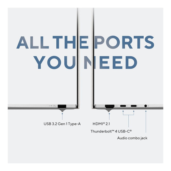With a robust 72 Wh battery, the Zenbook S 14 provides all-day power, ensuring you can work and play without constant recharging. Its versatile connectivity options include multiple USB-C ports, making it easy to connect your peripherals and accessories.