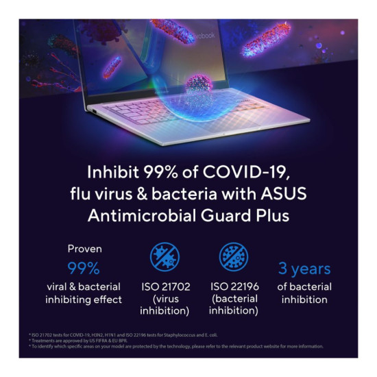Turn everyday tasks into something special with Vivobook 14, your essential tool for getting things done easier, anywhere. Its completely user-friendly too, with its 180° lay-flat hinge and physical webcam shield. ASUS Antimicrobial Guard Plus protects frequently-touched surfaces from harmful bacteria, safeguarding your health. Make all your days more enjoyable with Vivobook 14!