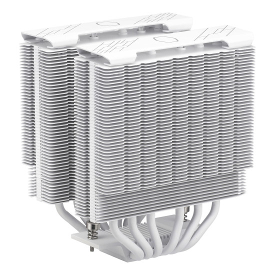 Built on the proven Cooler Master Hyper 622 foundation, the Hyper 622 Halo White delivers high-performance PC cooling with striking white aesthetics and vivid lighting effects. Its aluminium fins and six copper heatpipes rapidly dissipate heat while twin 120mm fans push over 51 CFM of airflow. Whether you're building an all-white gaming PC or upgrading your thermal solution, this Cooler Master heat sink offers performance and polish in equal measure.