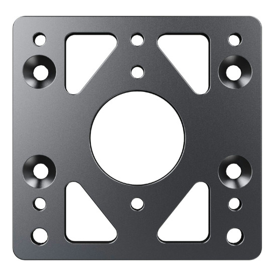This plate allows the MOZA Racing R9, R12, R16, and R21 wheel bases to be securely fixed onto the support bracket’s three holes for enhanced stability. With the R5 wheel base, this adapter plate enables the use of four secure mounting points, instead of just two.