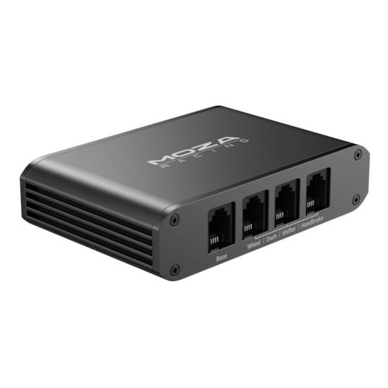 The MOZA Racing Universal Hub features four ports, one pedal and three expansion ports. These allow you to connect multiple MOZA Racing products to one USB port on your gaming PC, streamlining your set-up. Equipped with a dual power supply system, this hub ensures stable operation. It recommended you connect via USB 2.0 when utilising this feature. The sleek outer shell is manufactured from aviation-grade aluminium, for a sleek and modern finish.