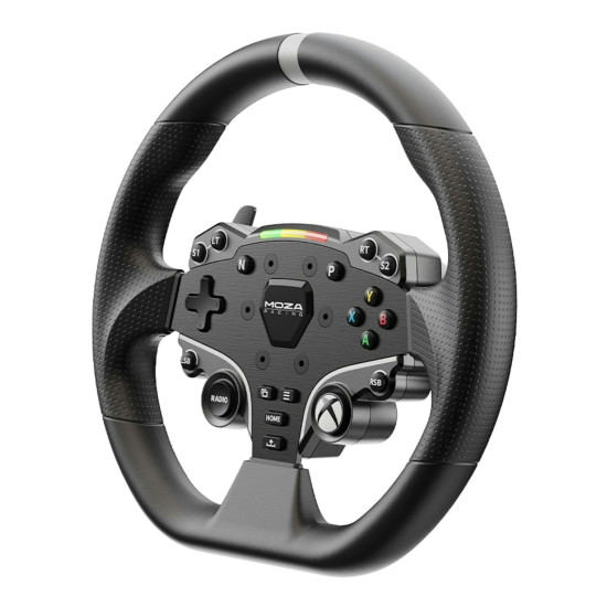 The MOZA ESX Steering Wheel combines official Xbox licensing with MOZA Racing’s direct drive technology to deliver an unparalleled racing experience on both PC and Xbox. Built for durability and comfort, it features a solid aluminum alloy rim and non-slip, sweat-proof ISF PU grips, ensuring peak performance during intense races. Its compatibility with PC and Xbox platforms offers seamless versatility for gamers. The wheel boasts 22 customizable buttons, including two joysticks, allowing for comprehensive control and on-the-fly adjustments. Fully adjustable RPM LED lights bring a dynamic visual element to your setup, while the industry-leading MOZA quick-release system ensures effortless wheel swapping. Whether you’re racing on PC or Xbox, the ESX Steering Wheel is the perfect choice for dedicated enthusiasts.