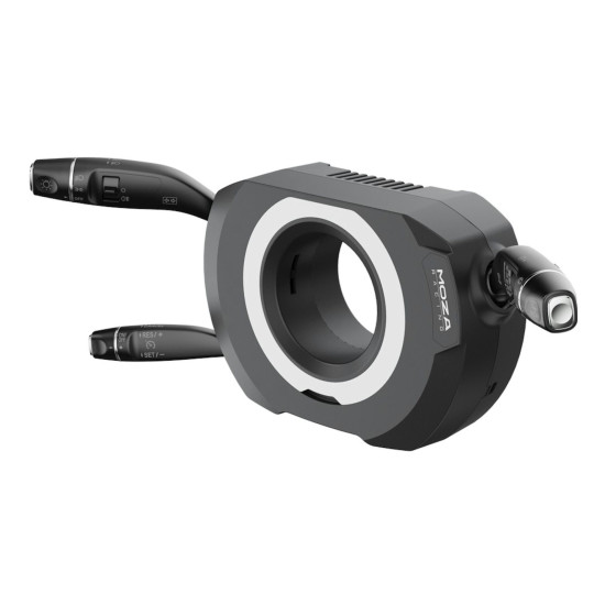 Wiper Lever | Headlight Lever | Cruise Control Lever | 28 Programmable Switches | High-strength Steel Mounting Bracket | Aluminum Alloy Extension Rod | Auto-cancelling turn signals | All MOZA bases Compatible + third-party bases with optional brackets