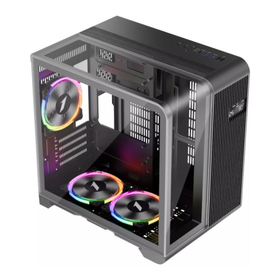 The RT5 features three tempered glass panels offering a panoramic view of your build. Highlight your best-in-class hardware and vibrant RGB lighting from multiple angles, perfect for e-sports and gaming enthusiasts who live dazzling setups.