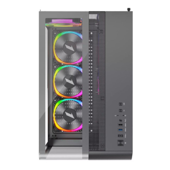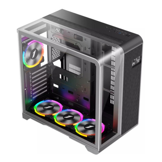 The RT7-BK-3FS7R-1FS7 is a sleek and minimalist ATX gaming case, designed for gamers who want a premium aesthetic with high-performance cooling. With three tempered glass panels, the RT7 provides a panoramic view of your build, allowing you to showcase top-tier hardware and dynamic RGB lighting from multiple angles. This case is ideal for e-sports players and gaming enthusiasts who want a setup that looks as good as it performs.