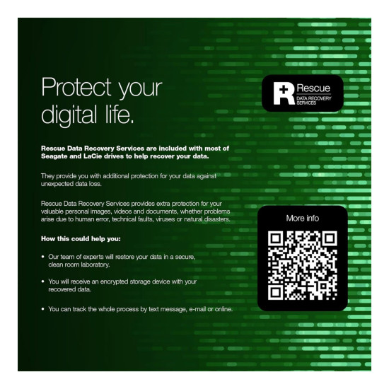 Enjoy peace of mind with the included limited warranty and Rescue Data Recovery Services