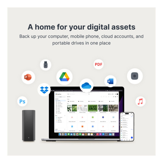BeeStation offers 4TB of secure cloud storage, preconfigured for effortless use. Manage, access, and share files across devices without subscription fees. Store all your data centrally while ensuring maximum privacy and accessibility from anywhere.