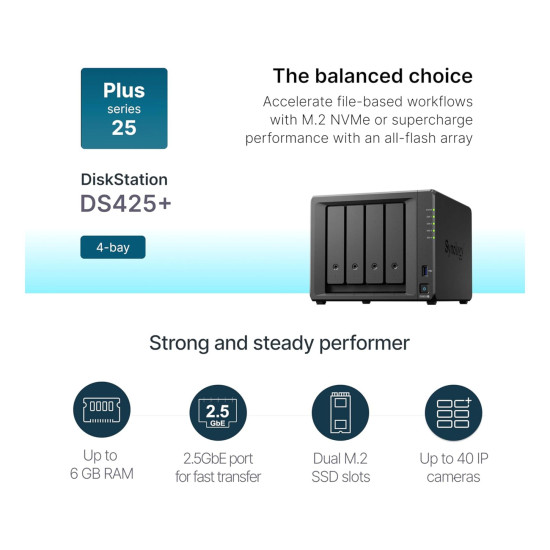 Synology DS425+ 4-Bay NAS Enclosure (2GB RAM)