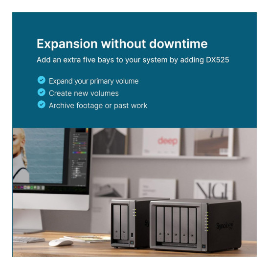 Add 5 extra drive bays for up to 140 TB of storage with one DX525 expansion unit