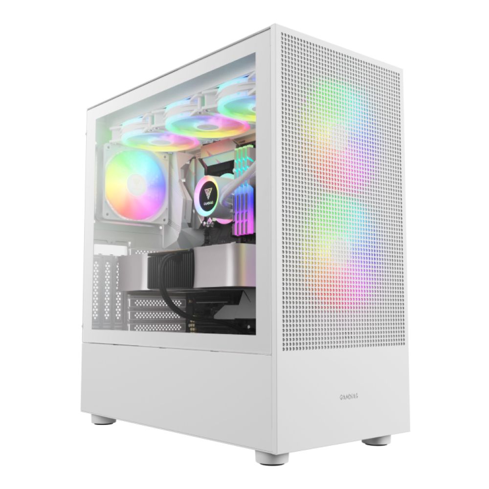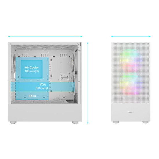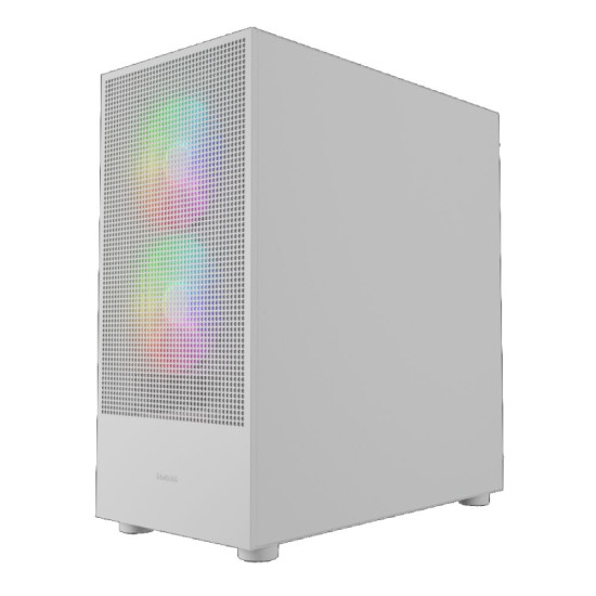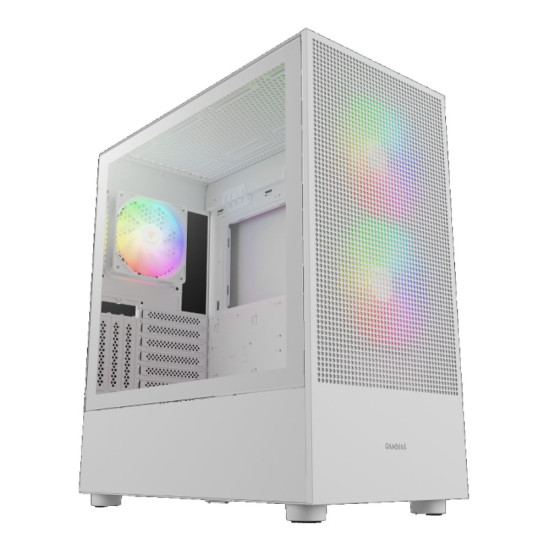 The TALOS M3 MESH Series, in matte black and snow white, is a mid-tower case that focuses on maximizing compatibility and airflow performance. It is equipped with two 140mm PWM ARGB fans at the front and a 120mm one at the rear, a perforated mesh front panel while providing an elegant look with a protruding PSU shroud and a tempered glass side panel.