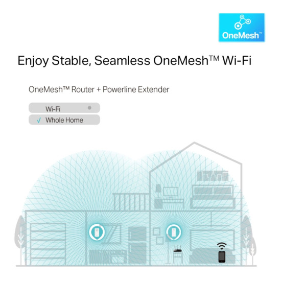 With the newest OneMeshTM technology, the kit works with your existing OneMeshTM router to form a unified Mesh network. No more switching Wi-Fi network names, enjoy uninterrupted streaming and truly seamless AC1200 Wi-Fi.
