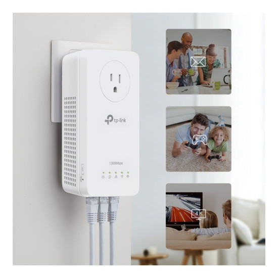 The TL-WPA8631P can be used like a traditional electrical socket, ensuring no power socket goes to waste. The built-in noise filter helps prevent electrical signal noise from affecting powerline performance.