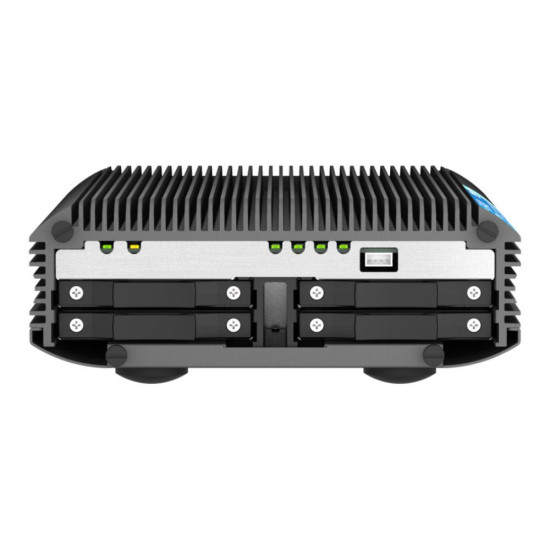 The TS-i410X is powered by Intel® Atom® x6425E quad-core processor (burst up to 3.0 GHz) and equipped with 8 GB dual-channel memory. With hardware-accelerated AES-NI encryption, the TS-i410X also provides unmatched encryption performance while ensuring the safety of sensitive business data stored in the NAS. The TS-i410X has four 2.5-inch SATA 6Gb/s SSD slots for allocating SSDs (industrial SSDs are recommended) to greatly boost IOPS to meet the performance requirements of demanding applications.