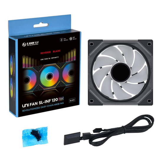 hidden inside the frame of the fan. The 120mm fan is 25mm thick and is