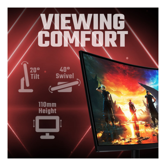 This monitor features a large 34-inch ultra-wide display with a 21:9 aspect ratio, providing an expansive viewing experience ideal for multitasking, gaming, and immersive media consumption. It includes a convenient power and OSD (On-Screen Display) control button for quick access to settings, as well as integrated cable management to help maintain a clean and organized setup. Adding a touch of personalization and flair, the monitor also includes built-in RGB lighting. For audio, it comes equipped with two powerful 3-watt speakers, delivering clear stereo sound.