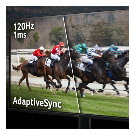 Enjoy fluid movement and precise control with the 120Hz refresh rate-ideal for fast-paced content and gaming. The ultra-fast 1ms response time minimises motion blur and ghosting, allowing you to catch every detail in action scenes or high-speed edits. Adaptive Sync technology reduces screen tearing for seamless visuals, improving your experience whether you're gaming, streaming, or multitasking.