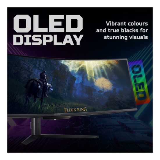 Immerse yourself in infinite detail with the Acer Predator X49X curved QD-OLED monitor. Its 49-inch ultrawide display and lightning-fast 240Hz refresh rate deliver instant response and seamless, cinematic gameplay.