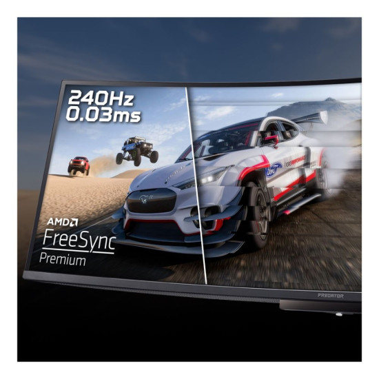 The Acer Predator X49X delivers flawless performance with a 240Hz refresh rate and ultra-fast 0.03ms response time. Every frame is rendered with razor-sharp precision, eliminating motion blur and input lag for a fluid, competitive edge. With AMD FreeSync Premium, gameplay remains buttery-smooth and tear-free, even in the most intense moments. This Acer Predator 49 inch monitor is built for speed, making it perfect for fast-paced esports and high-performance gaming.