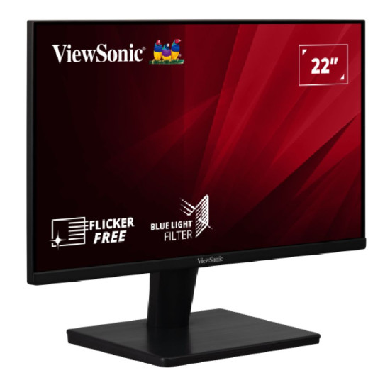 The ViewSonic VA2215-H offers comfortable viewing with flicker-free and low blue light technologies that support extended work sessions.