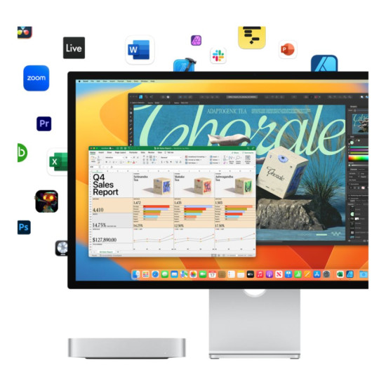 Connect up to two displays, including Thunderbolt 4 digital video output and HDMI displays. Coupled with the macOS Ventura as its operating system and the M2 chip driving it, the new Mac mini transforms what ultra-compact desktops can do and at an even better price than before. Mini in size. Mighty in performance.