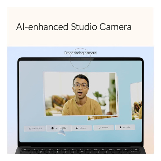 Show up looking great with the Full HD camera. AI features like automatic framing and creative filters ensure you always look and sound your best.