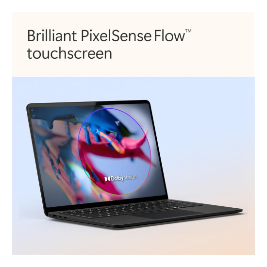 The 13.8" PixelSense Flow HDR touchscreen delivers stunning clarity and adaptive contrast, enhancing visuals with crisp whites, rich blacks and vibrant colours. Paired with Omnisonic Speakers and Dolby Atmos, it provides immersive sound for both work and entertainment.